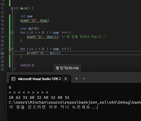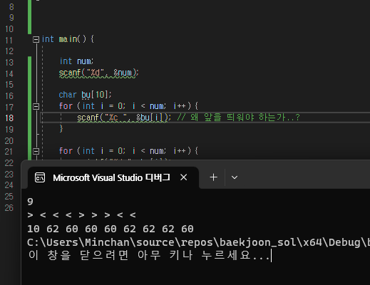 scanf(" %c", &bu[i]); // 왜 앞을 띄워야 하는가..?