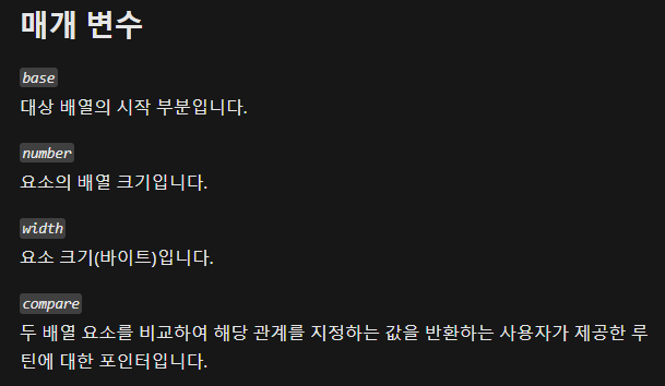 여기에 추가로 compare함수를 통해 c의 qsort와 같이 조건을 추가할 수 있다.